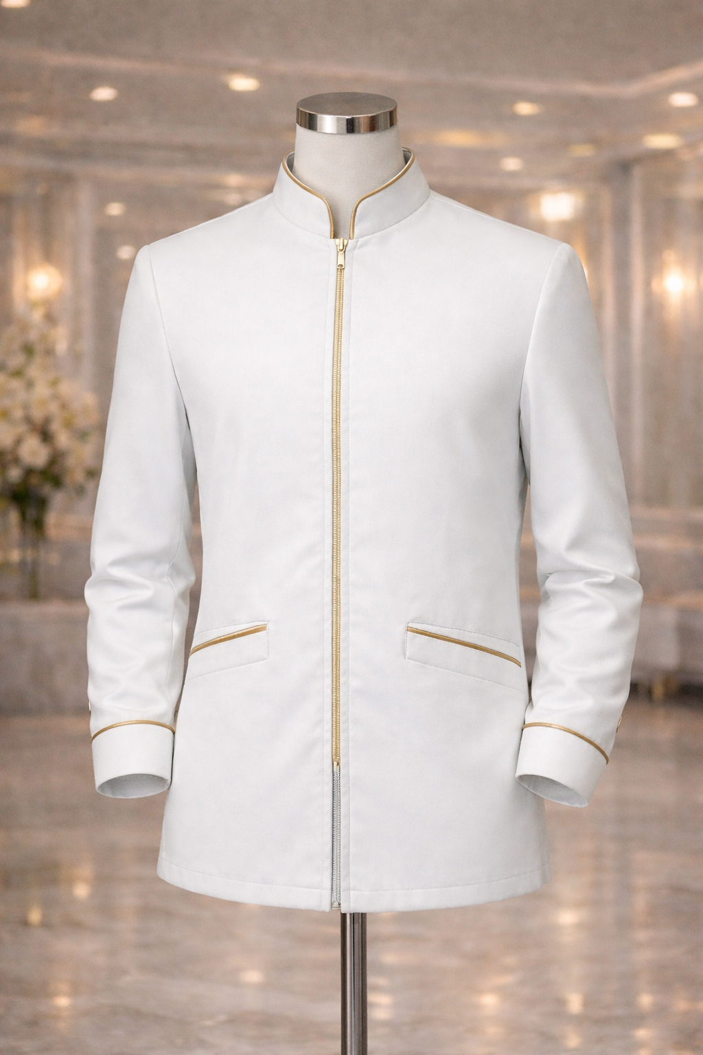 O jaleco é feito com tecido resistente, ideal para uso prolongado sem perder o formato. O zíper frontal garante rapidez ao vestir e o design pensado para o público masculino mantém o caimento elegante.